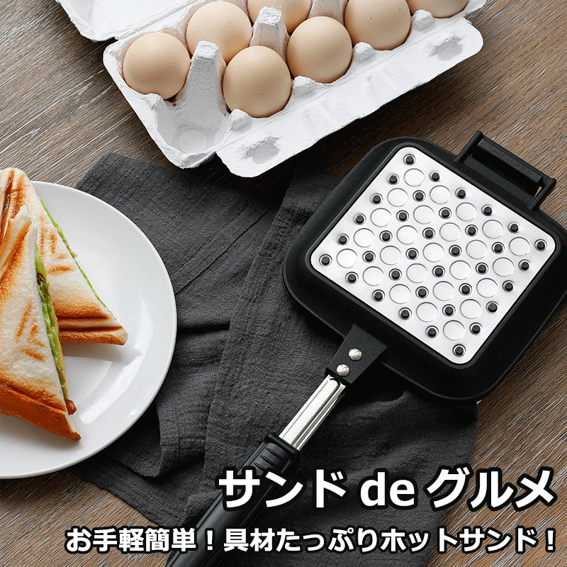 全国送料無料 日本製 サンドdeグルメ KS-2887 杉山金属 燕三条製 ホットサンドメーカー ホットサンドパン 耳まで ガス 直火 IH 対応 本体着脱式 フッ素樹脂加工 料理 調理 サンドパン 朝食 簡単 家事 エコ 時短 手軽 キャンプ 国産 JP 大容量