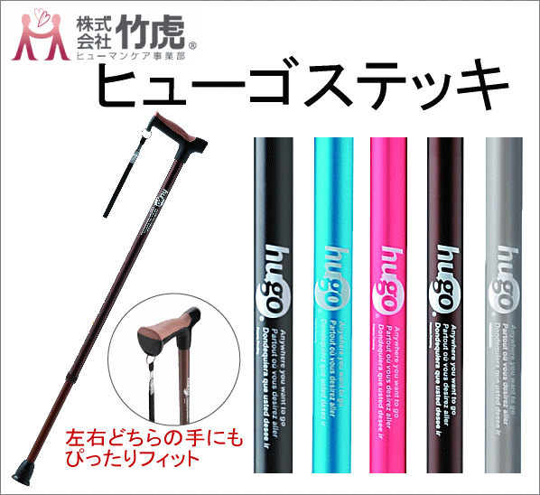 入荷待ち 8月以降 竹虎伸縮ヒューゴステッキカラーバリエーション5色 クッション付きグリップ ストラップ付き 長さ:68〜96cmで12段階調整 安定感抜群の杖先【楽ギフ_包装】【 ギフト】 介護 福祉 サービス 高齢 者 デイ サービス シニア