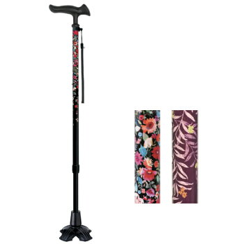 杖 4点杖 おしゃれ 女性 軽量 伸縮 花柄 スリムネック 握りやすい ストラップ付 かるがもファムII 4点DX フジホーム 歩行補助 多点 細首 安定歩行 散歩 ウォーキング 誕生日 母の日 敬老の日 ギフト プレゼント 介護用品