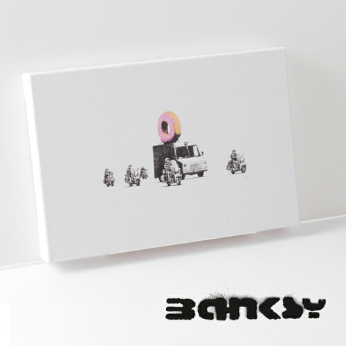 BANKSY CANVAS ART キャンバス アートファブリックパネル スモール "Strawberry Donut" 31.5cm × 21cm アート ストロベリー ドーナツ ギフト トラッド