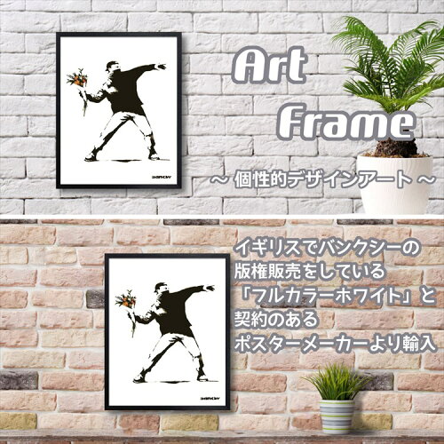 正規ライセンス】バンクシー アートパネル53 アートフレーム 花束を投げる男性 アートポスター 作品 絵 絵画 グッズ 有名 壁画 北欧 イラスト 壁掛け フレーム付き おしゃれ モダン シンプル Molotov フラワーボンバー 戦争反対 平和 約40cm 50cm 大きい 大型 Banksy