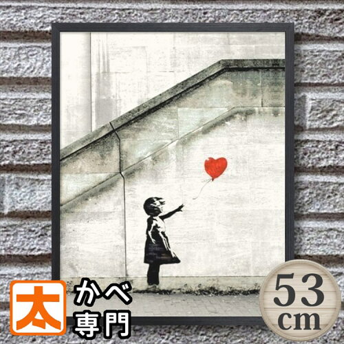 ■商品説明 【Banksy アート53 Red Balloon】木製フレームの個性的インテリアピンやフックを刺しての壁掛け、立てかけ。