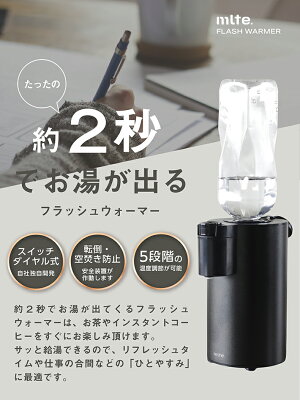 卓上 ウォーターサーバー ペットボトル 500ml mlte ミルテ フラッシュウォーマー MR-01FW ぺットボトル コンパクト 温水 お湯 熱湯 ワンタッチ 簡単 お手軽 直挿し 瞬間 湯沸し器 電気 ポット 温度調節 5段階 お茶 紅茶 コーヒー インスタント カップスープ