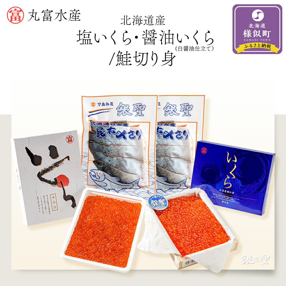 【ふるさと納税】【丸富水産】北海道産 塩いくら・醤油いくら(白醤油仕立て)と鮭切り身のセット | 北海道 様似町 お土産 いくら イクラ 魚卵 海産物 イクラ醤油漬け 醤油いくら 秋鮭 鮭 海鮮 お取り寄せ 特産品 ギフト 贈り物 贈答品 北海道様似町 おすすめ