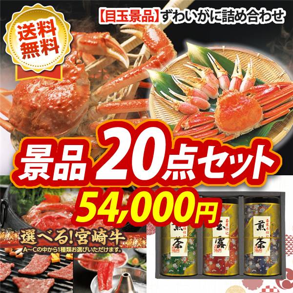 ゴルフ景品20点セット【北海道産ズワイ蟹、靴除菌機 他】送料無料!特大パネル・目録・特典付き!