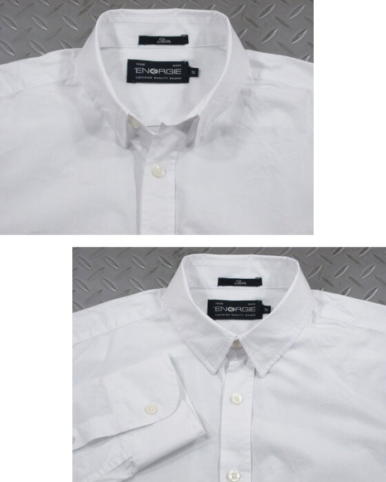 こちらは、 アンチエイジな清潔感のある洗練された知性的な着こなしが 楽しめる、エナジーの白無地シャツ。
