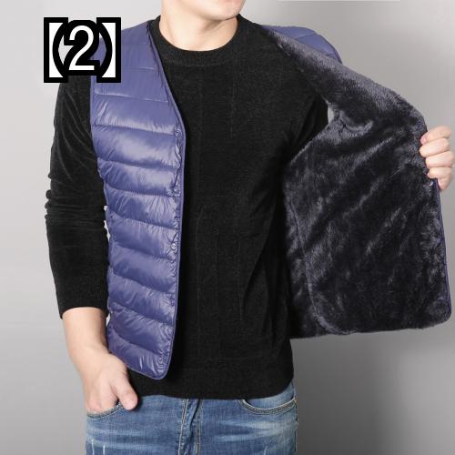 メンズ ダウン ベスト 防寒対策 暖かい アウター 保温性 カジュアル おしゃれ 防寒着 通勤 アウトドア コットン ベルベット インナーベスト シンプル Vネック